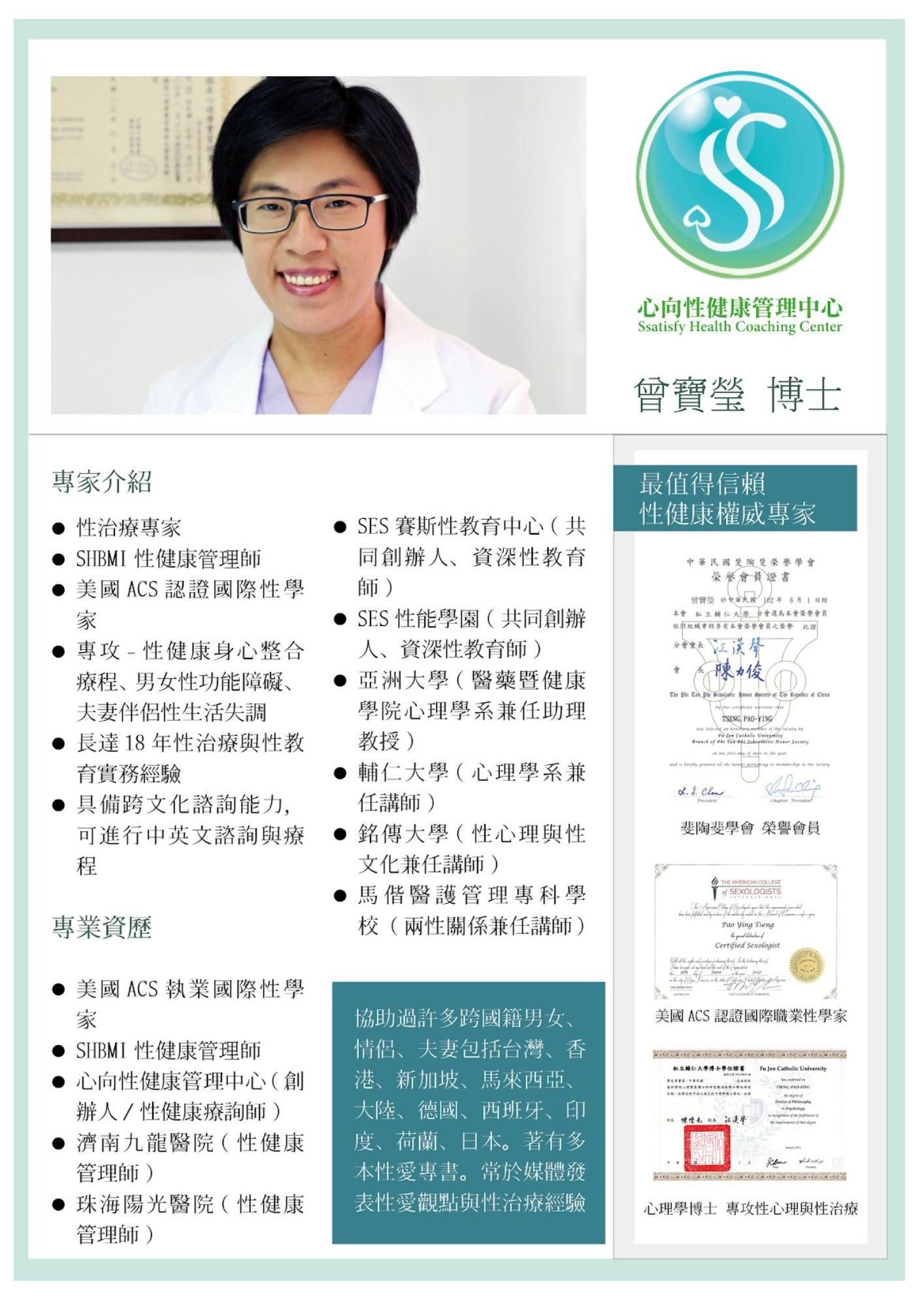 是性治療師,美國ACS認證執業性學家,也是心理學博士。
